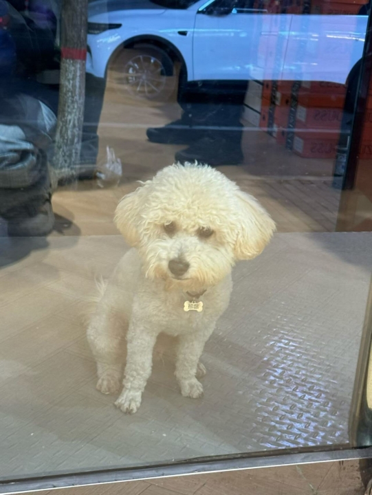 本人于2025年12月18日上午八点袁家庄四巷。中央公园。丢失一只比熊。走丢时脖子里有项圈铃铛狗牌。有一条黄色的狗品种:比熊